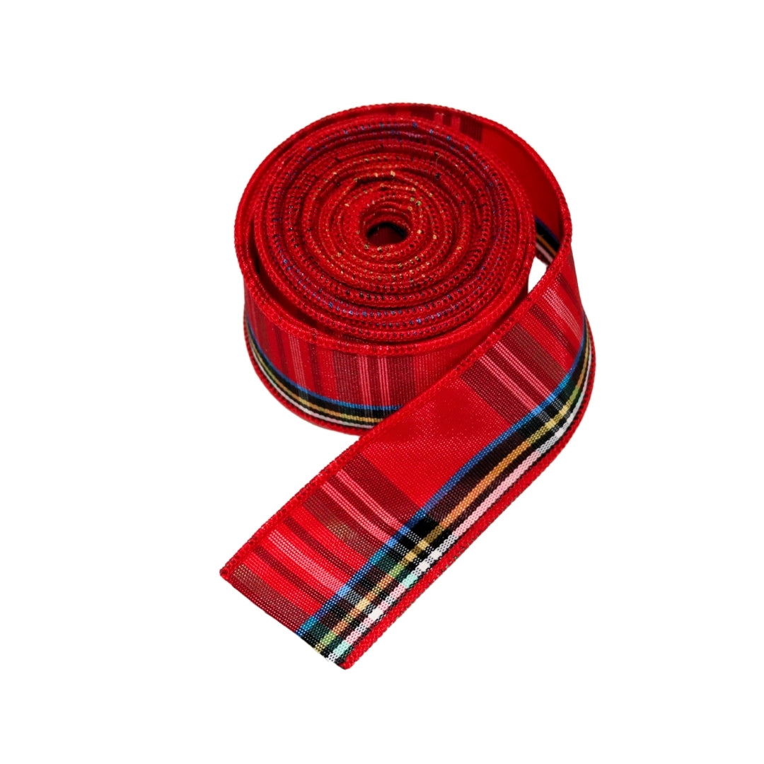 Ruban décoratif large de Noël - Tartan rouge, vert et bleu