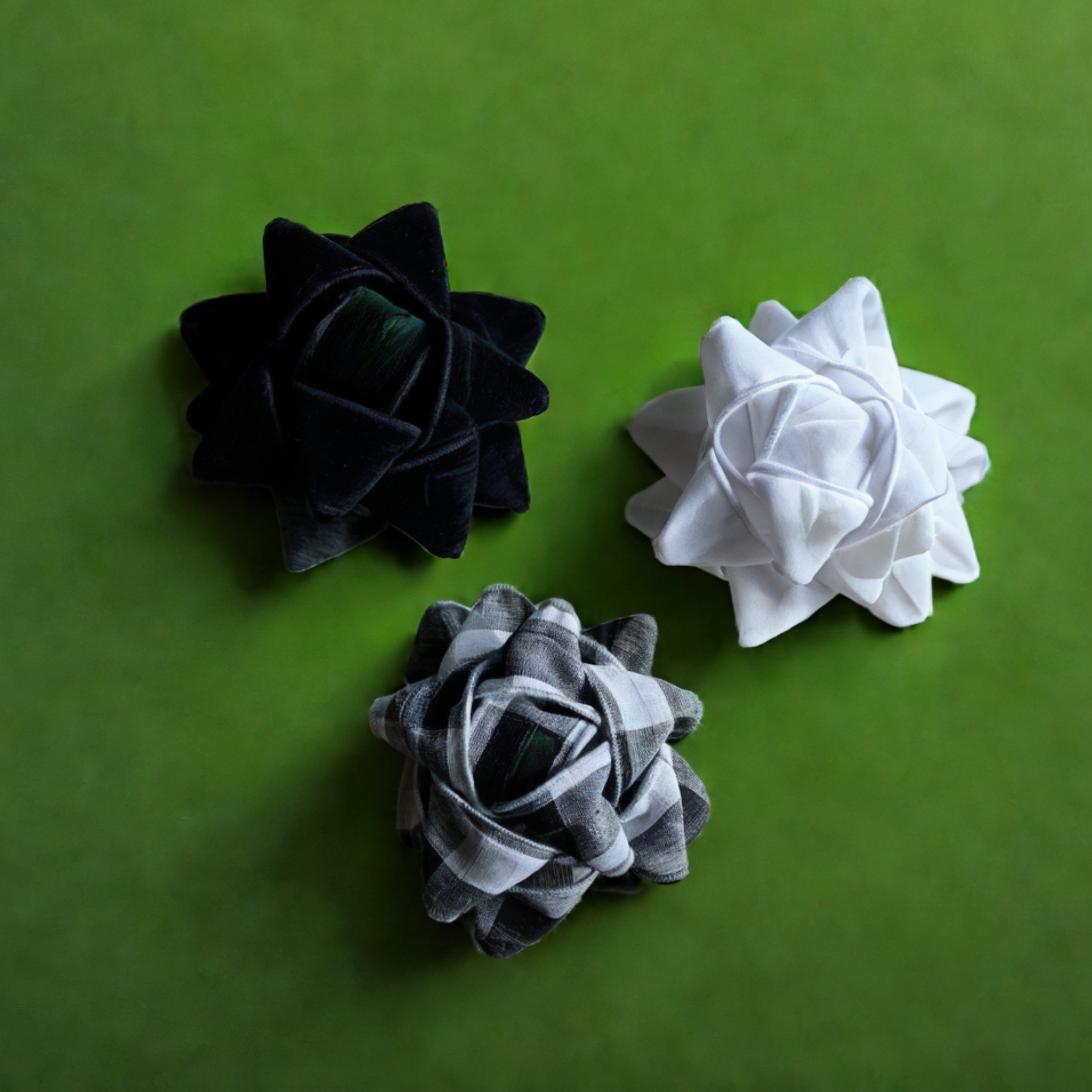 Ensemble de 3 choux à cadeaux en tissu - Noir velours et blanc