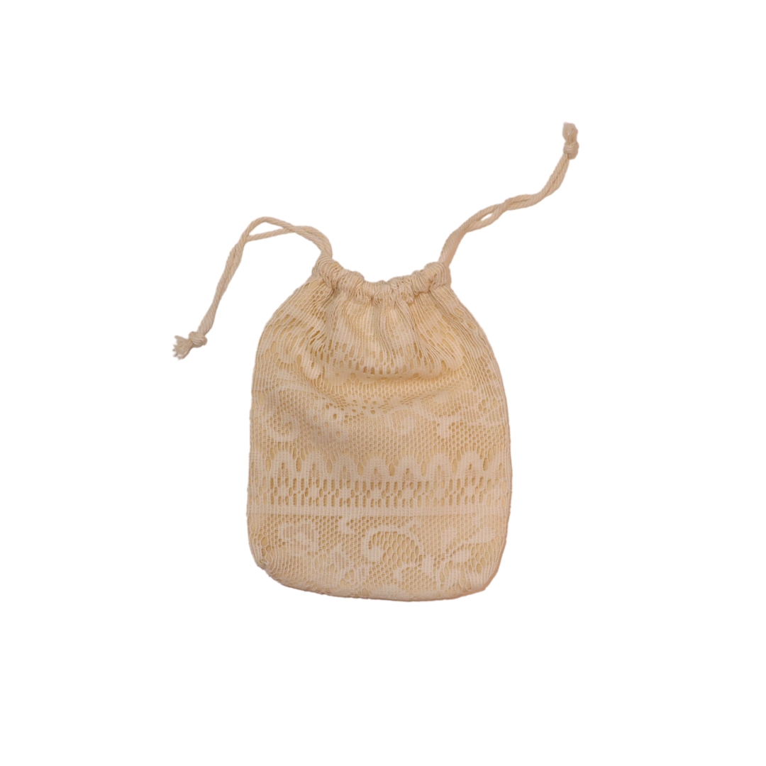 Petit sac cadeaux en tissu réutilisable - Dentelle - Crème