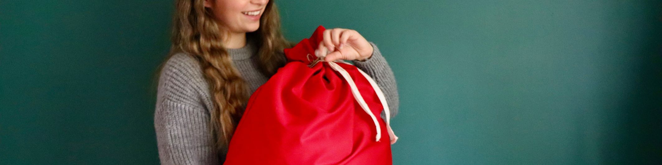 Grande poche à cadeaux en tissu réutilisable - Classique - Rouge