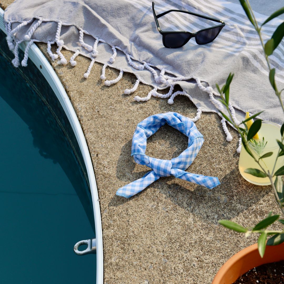 Chou à cadeau en tissu - Effet soie bleu ciel