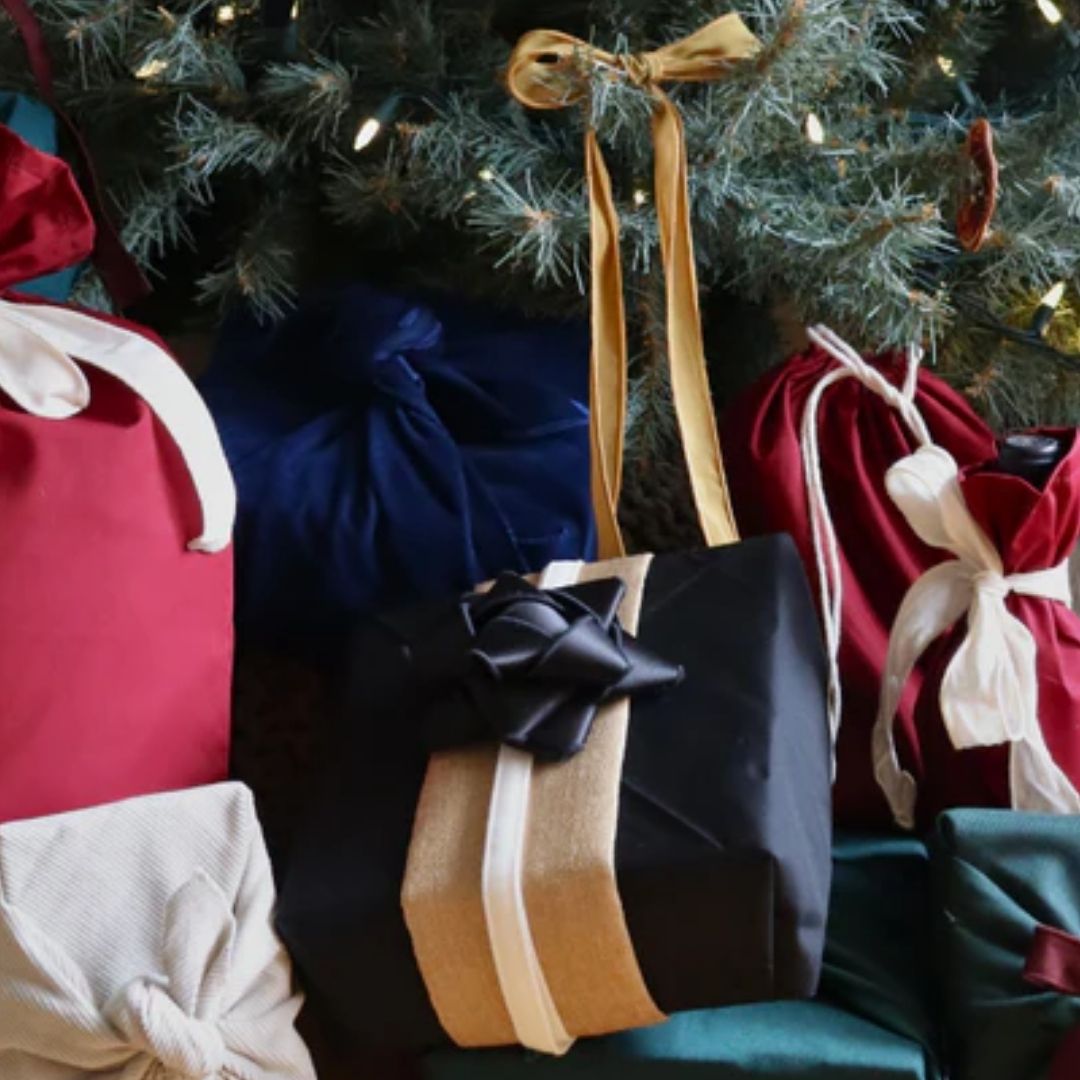 Vice-Versaᴷᴵᵀ - Bandeau rayures multicolores sur un Furoshiki bleu pâle et un chou blanc