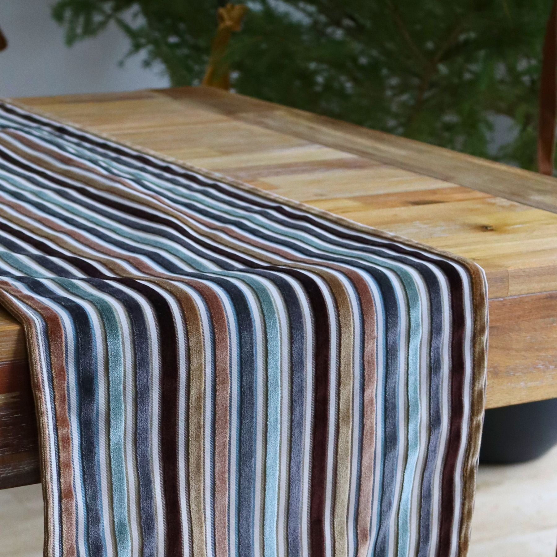 Table Runner - Brown, Gray, Sage, and Rust Velvet Stripes