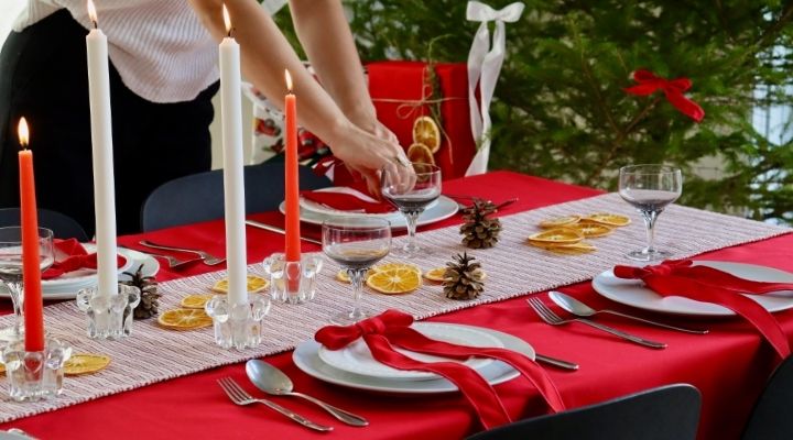 Table Runner - Burgundy, Dark Violet, and Ochre Stripes