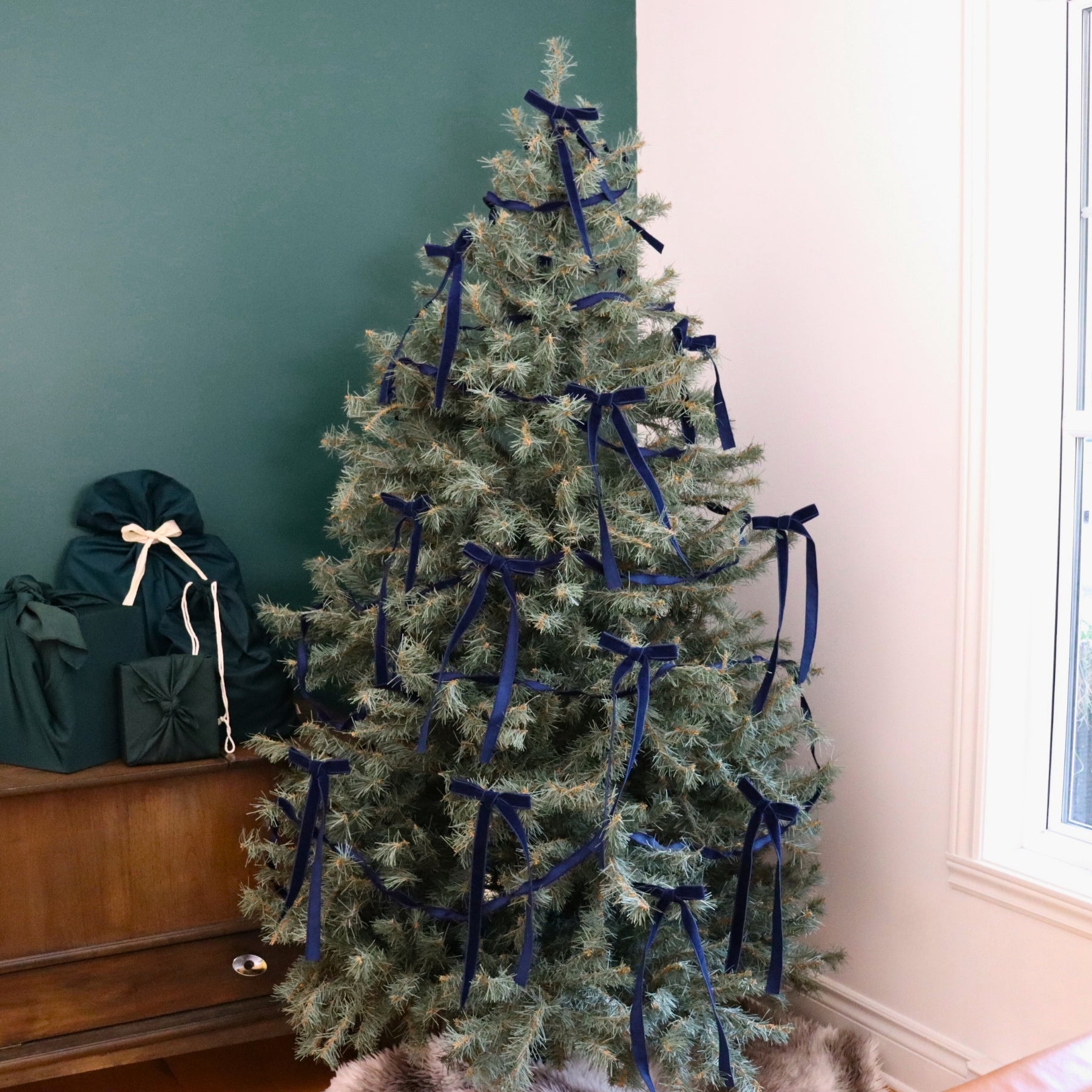 12x Long bows: Blue corduroy3x Decorative ribbons: Blue corduroy