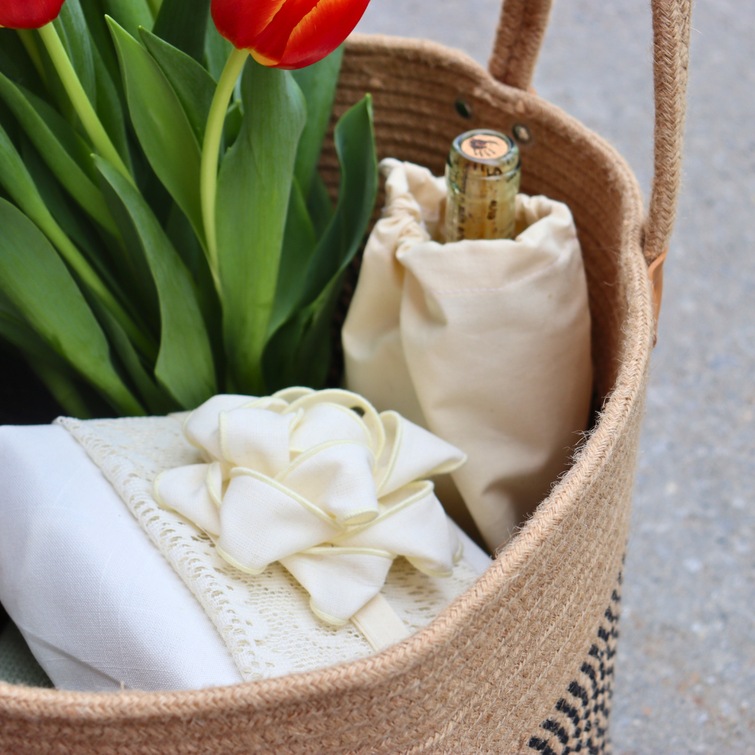 Sac cadeaux en tissu réutilisable - Classique - Crème